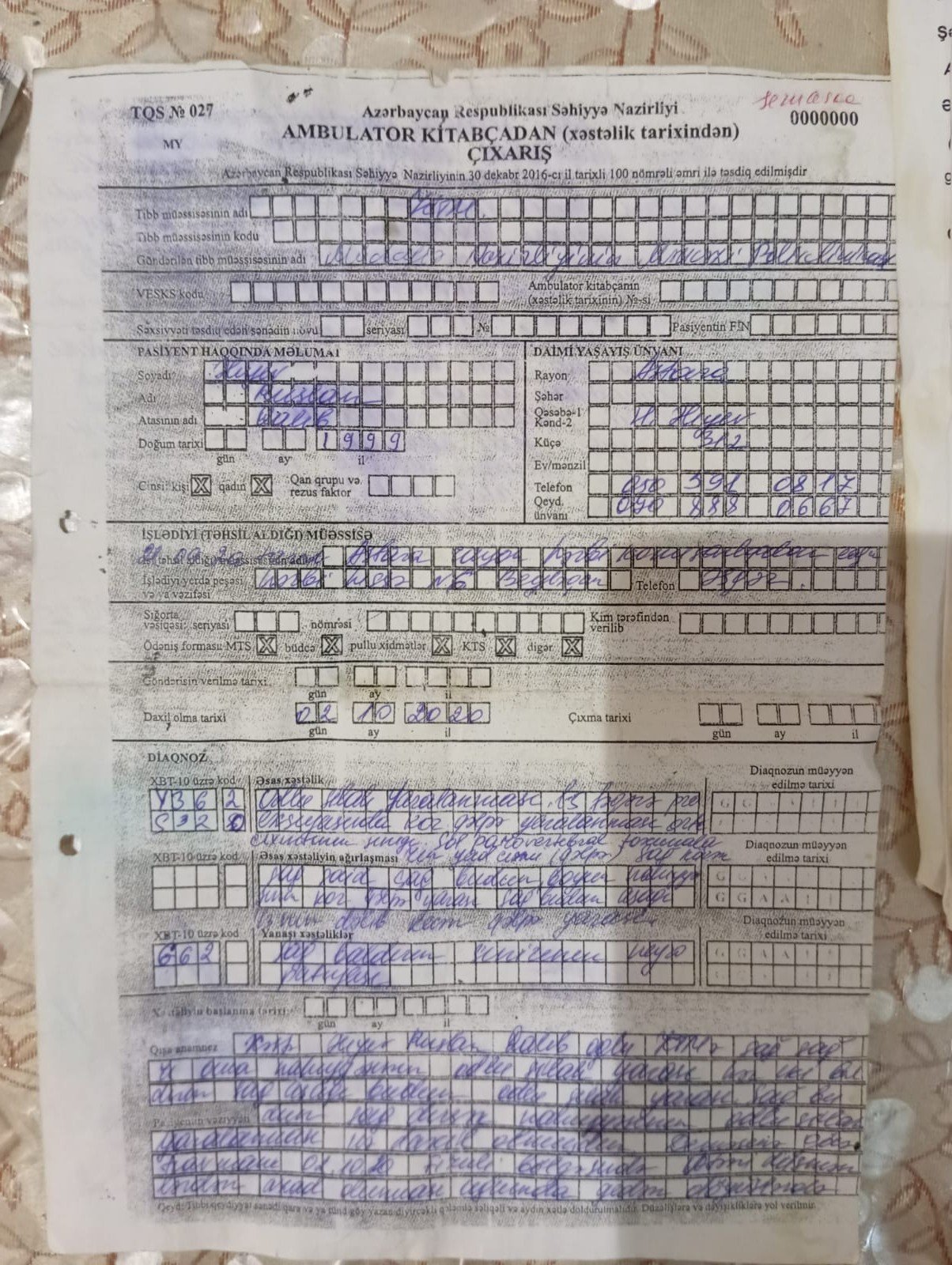 Dəfələrlə müxtəlif qurumlara müraciət etmişəm, lakin vəziyyətim hələ də nəzərə alınmayıb, mənə nə əlillik dərəcəsi, nə də pensiya təyin edilib. Ailəmə, övladlarıma baxa bilmədiyim üçün böyük maddi və mənəvi çətinliklər yaşayıram. Hazırda ailəm imkansızlığın pik həddindədir.