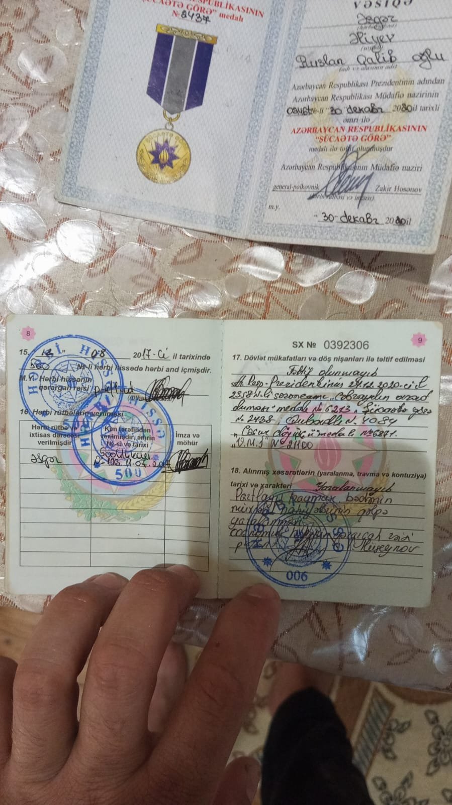 2020-ci ildə Azərbaycan Respublikasının ərazi bütövlüyü uğrunda gedən 44 günlük Vətən müharibəsində könüllü olaraq iştirak etmişəm. Füzuli istiqamətində, dağlıq və çox ağır döyüş şəraitində ön cəbhədə vuruşmuşam. Döyüşlərin birində ağır yaralanmışam. Bədənimdə bir neçə güllə yarası qalmış, əməliyyatlar keçirmişəm.