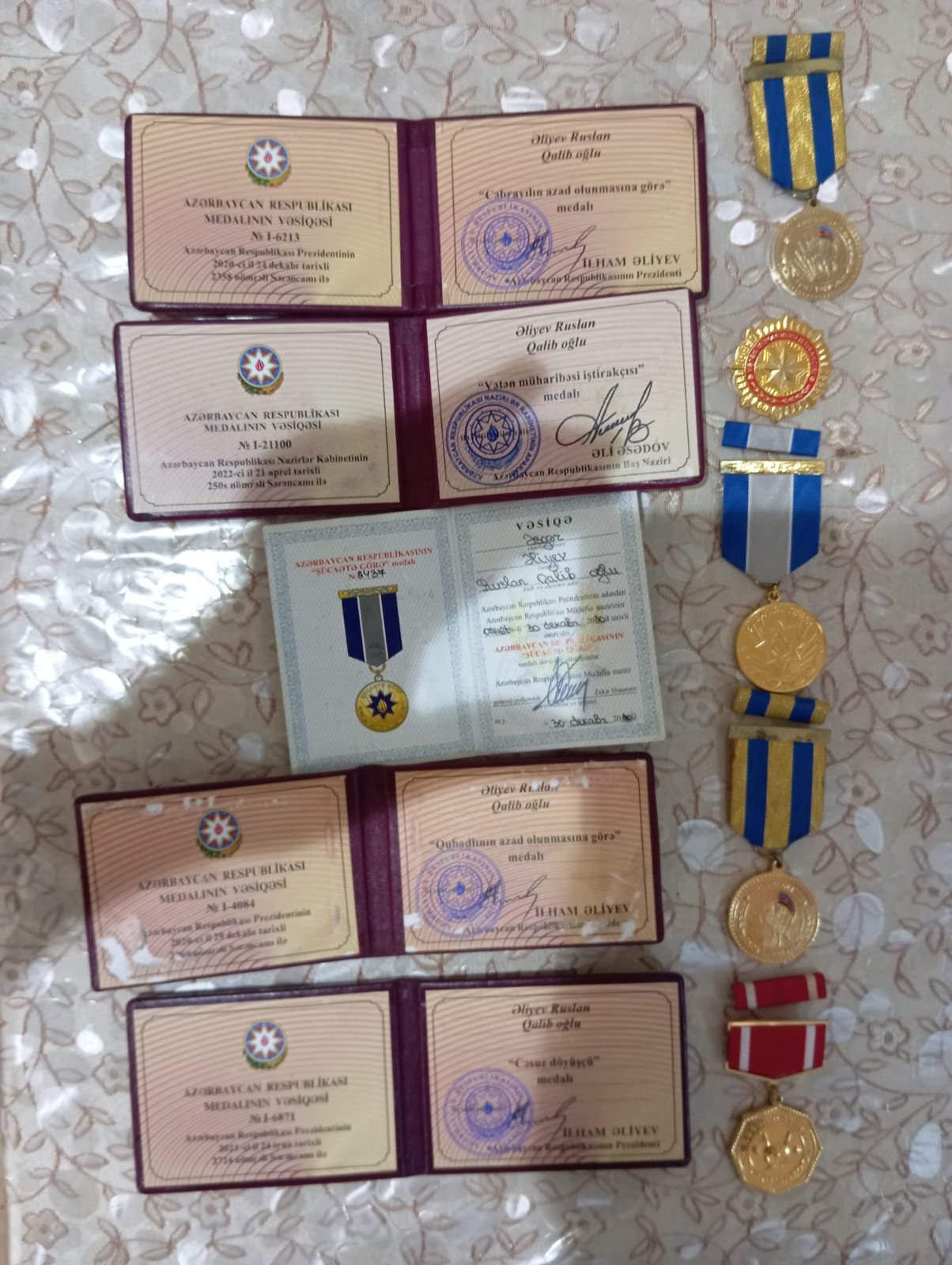 Döyüşlərdə göstərdiyim cəsarətə və Vətən qarşısında xidmətlərimə görə “Vətən müharibəsi iştirakçısı” döş nişanı ilə təltif edilmişəm, həmçinin Qubadlı və Cəbrayıl rayonlarının azad olunmasına görə medallarla mükafatlandırılmışam.