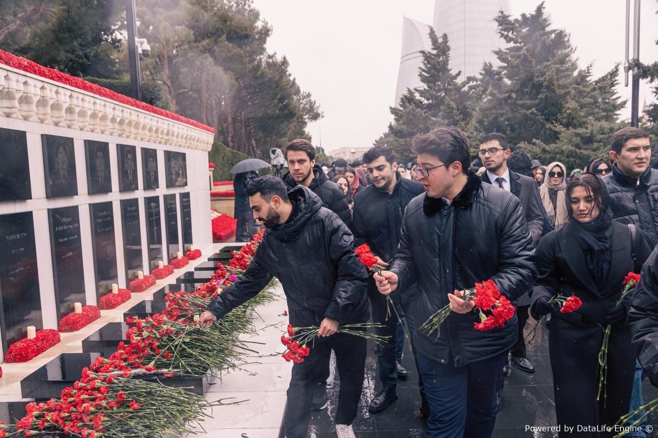 Tədbirlər 20 Yanvar faciəsində canlarından keçən şəhidlərimizin əziz xatirəsini anmaq məqsədilə Şəhidlər Xiyabanına təşkil olunan yürüşlə başlayıb. Gənclər təşkilatlarının rəhbər və nümayəndələri, həmçinin Tələbə Gənclər Təşkilatlarının üzvlərinin iştirakı ilə baş tutan tədbir zamanı ölkəmizin suverenliyi və müstəqilliyi uğrunda canlarını fəda etmiş şəhidlərin əziz xatirəsini hörmət və ehtiramla yad edilib. Qəhrəmanlarımızın xatirəsini anmaq üçün “Əbədi məşəl” abidəsinin önünə və şəhidlərin məzarlarına gül dəstələri düzülüb.